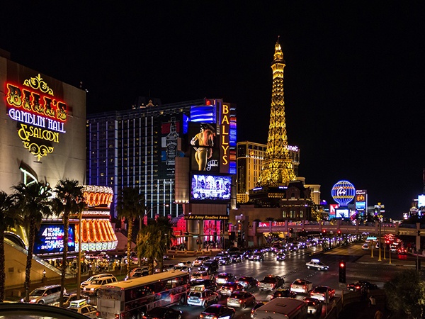 Vad som händer i Las Vegas stannar i Las Vegas. Här sparas det inte på något och det finns mer än bara spelbord och enarmade banditer. Las Vegas är sinnebilden för amerikansk verklighetsflyt med sina neonskinande kasion och hotell. Längs med huvudgatan som är den berömda "strippen", överträffar hotellen med varandra häftig aritektur och högklassig underhållning.